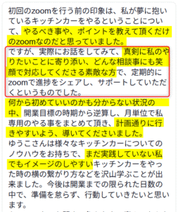 「開業に必要なこと」や「コスト・商品設計」など、 わからなかったことをわかりやすく教えていただきました。